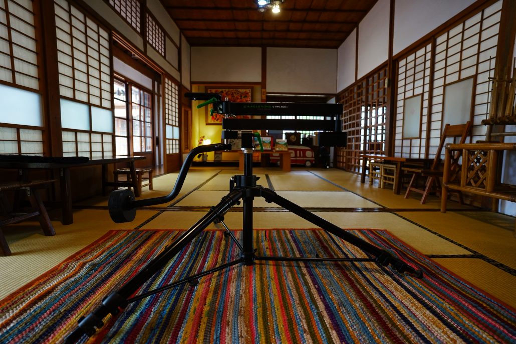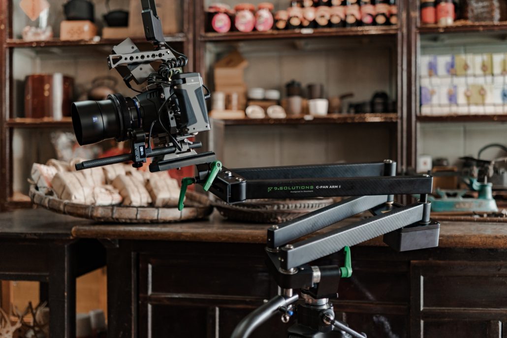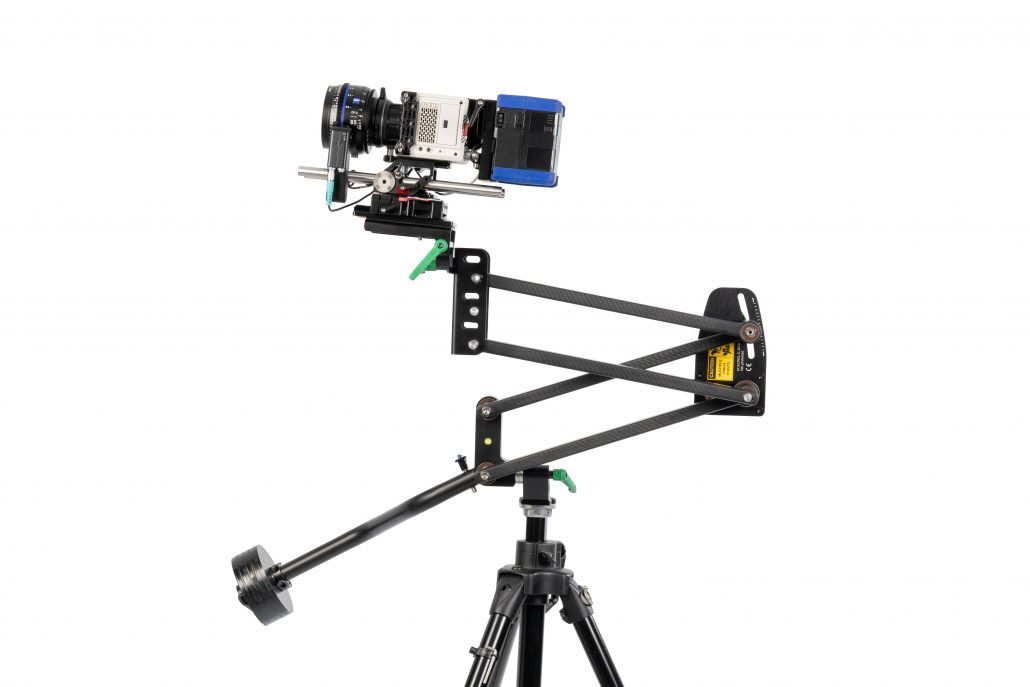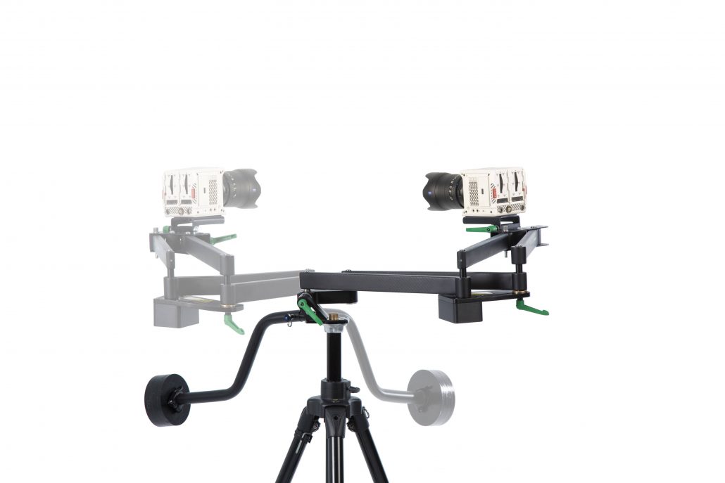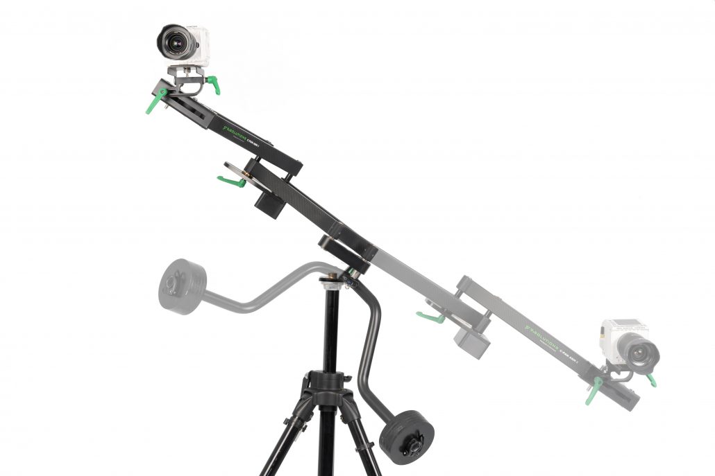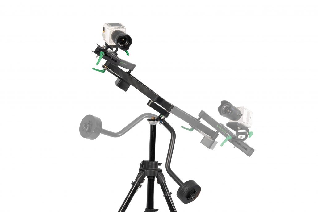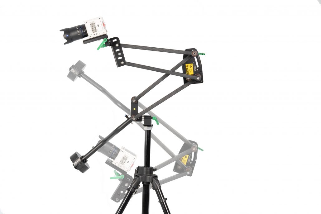 When making a straight pan, the arm functions as a traditional straight-track dolly slider, but without the tracks, where it can pan in a range of 3 1/2 times its folded length (which is approx. 55 cm).