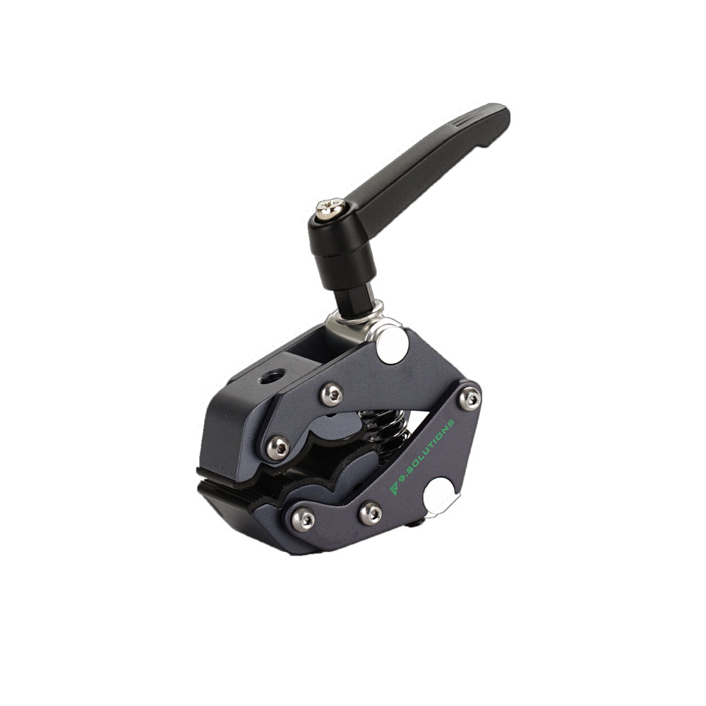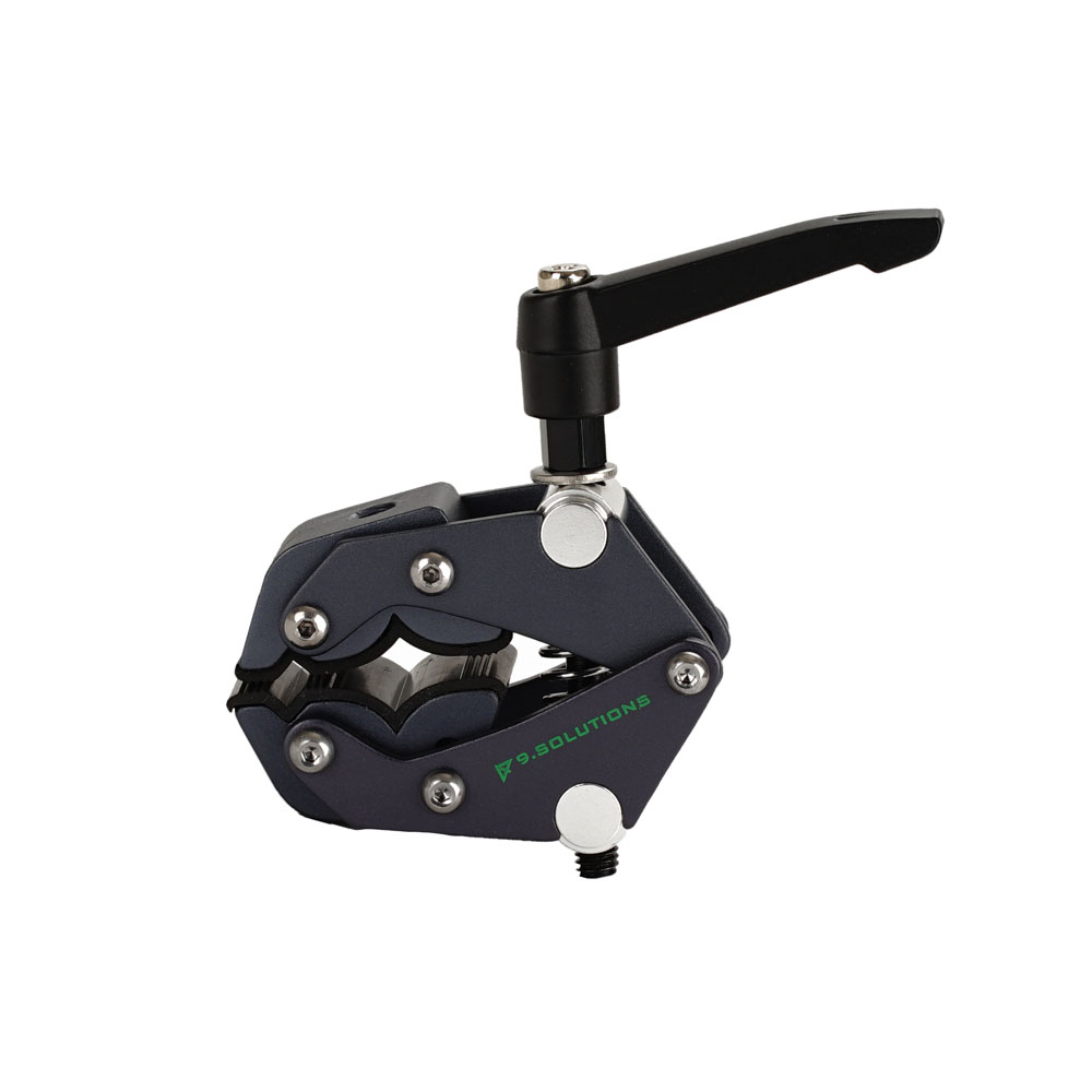 The Savior Clamp Mini is the miniature version of its big brother the Savior Clamp. It has two uniquely shaped jaws that clamp firmly onto any shape: round, square, or flat. The clamp’s jaws always have multiple points of contact thus creating more grip than the competitor. The Savior Clamp Mini has 1/4”-20 and 3/8”-16 female threads on its jaws. This makes it possible to mount multiple pieces of equipment on the clamp. It also has a kipp lever to accommodate fastening in small spaces.