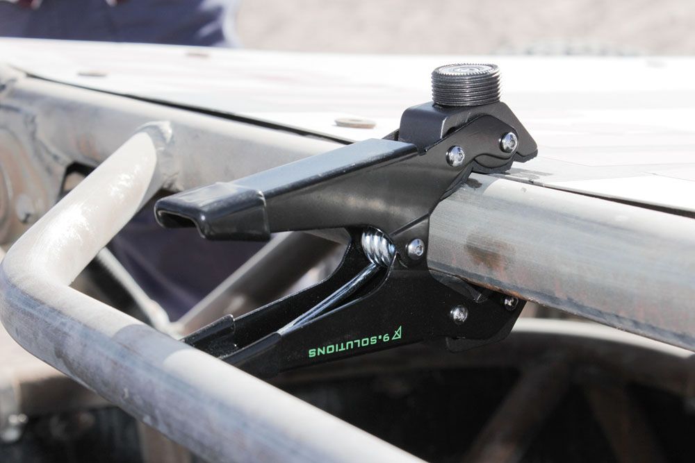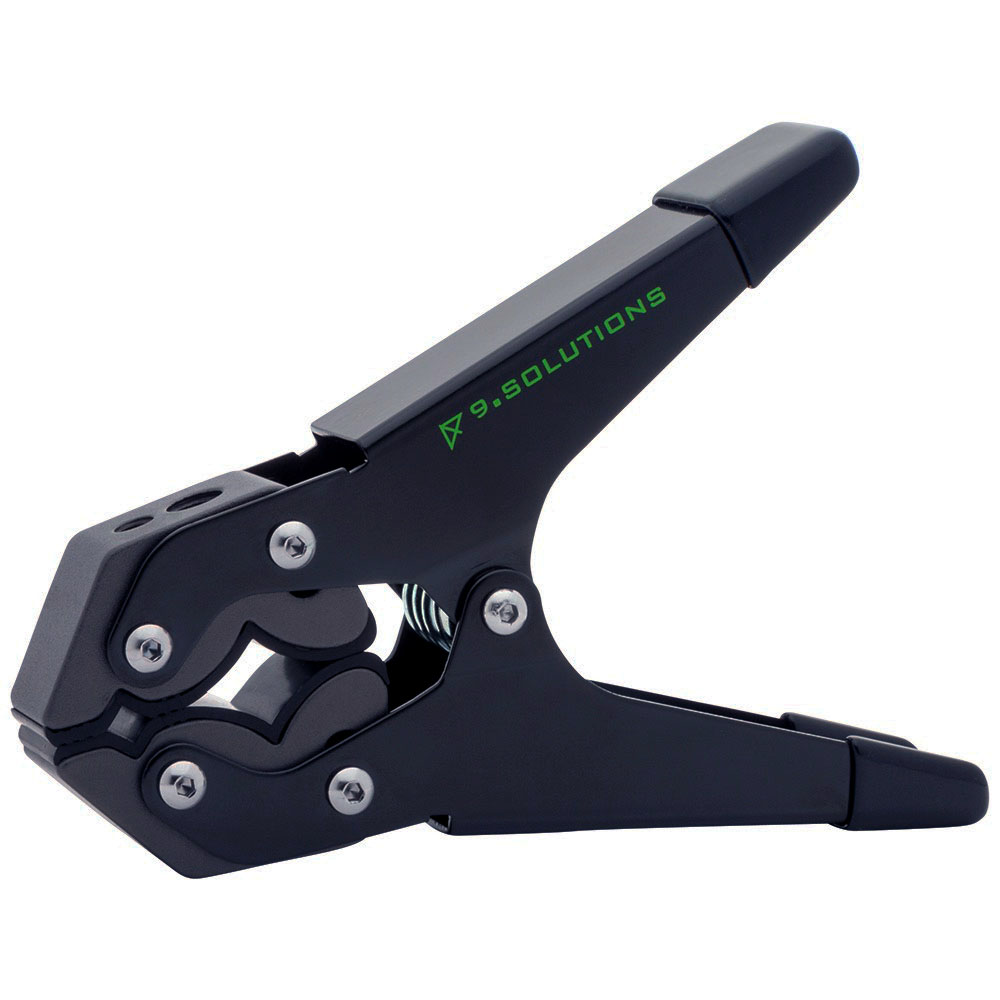 The Savior Spring Clamp is the fast-mounting version of the Savior Clamp. It is fitted with a strong, torsion spring that delivers maximum clamping force. It has unique, articulating jaws that can fit firmly onto any oddly shaped object. Whether mounting on round, square, or flat objects, the peak-and-valley design of the jaw allows for multiple points of contact, ensuring a strong grip every time.